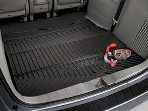 The molded vinyl Tri-Fold Cargo Mat protects the cargo-area carpet from wear and spills