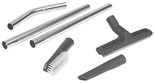 This six-piece set supplies tools and attachments to give you even more uses for your wet/dry vacuum. Designed for use with Porter-Cable's no. 7810 wet/dry vacuum, this assortment comes with two suction tubes, one bend tube, one universal brush, one universal floor tool, and one crevice tool. Metal extensions ensure durability, while the variety of brushes and wands make it easier to vacuum your car, clean furniture, or remove dust from concrete, tile, and wood floors.